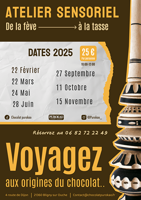 Cet atelier sensoriel « De la fève à la tasse » a été conçu pour vous faire plongez au cœur d’une expérience sensorielle, culturelle et interactive puisque vous fabriquez un palet de chocolat façon mexicaine, pour emporter chez vous !
