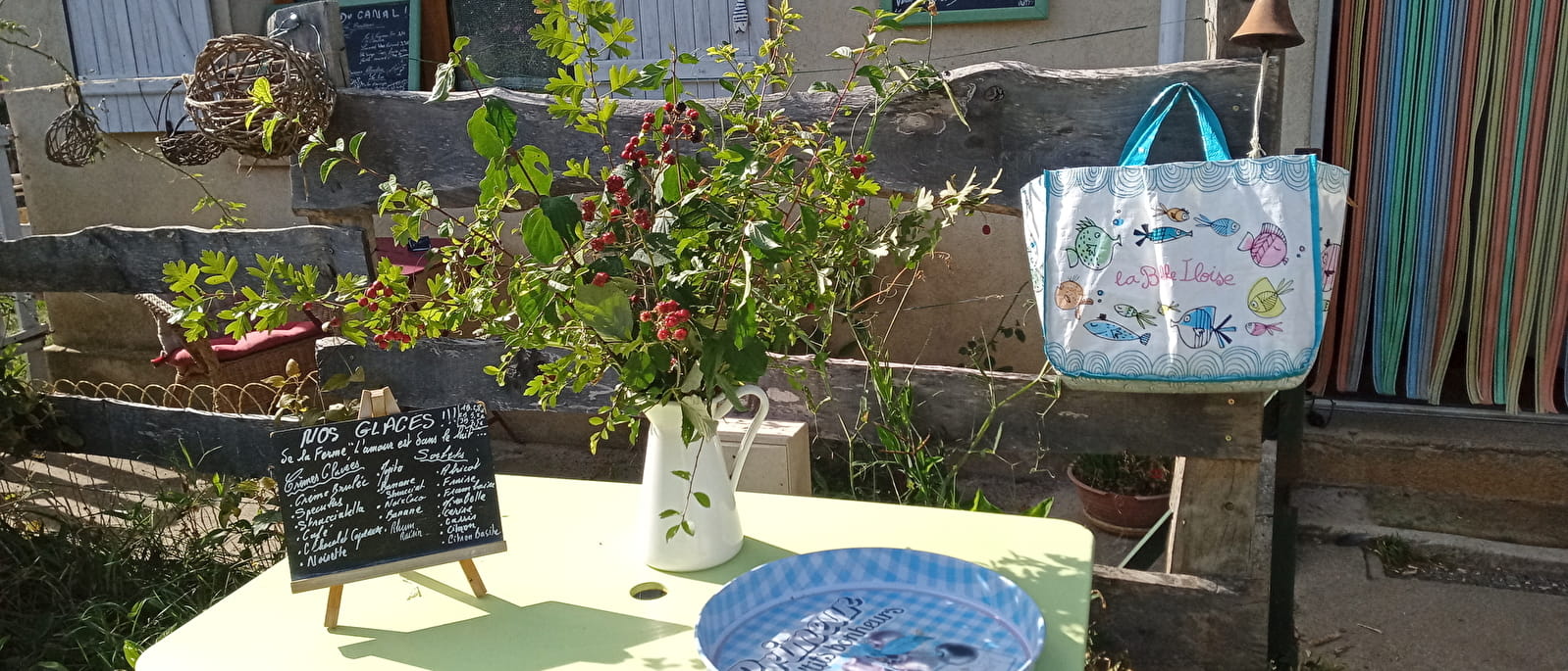 Assiettes thématiques aux légumes du jardin, charcuterie et fromages locaux, galettes ou gaufres fait maison, glaces de la ferme, ...
