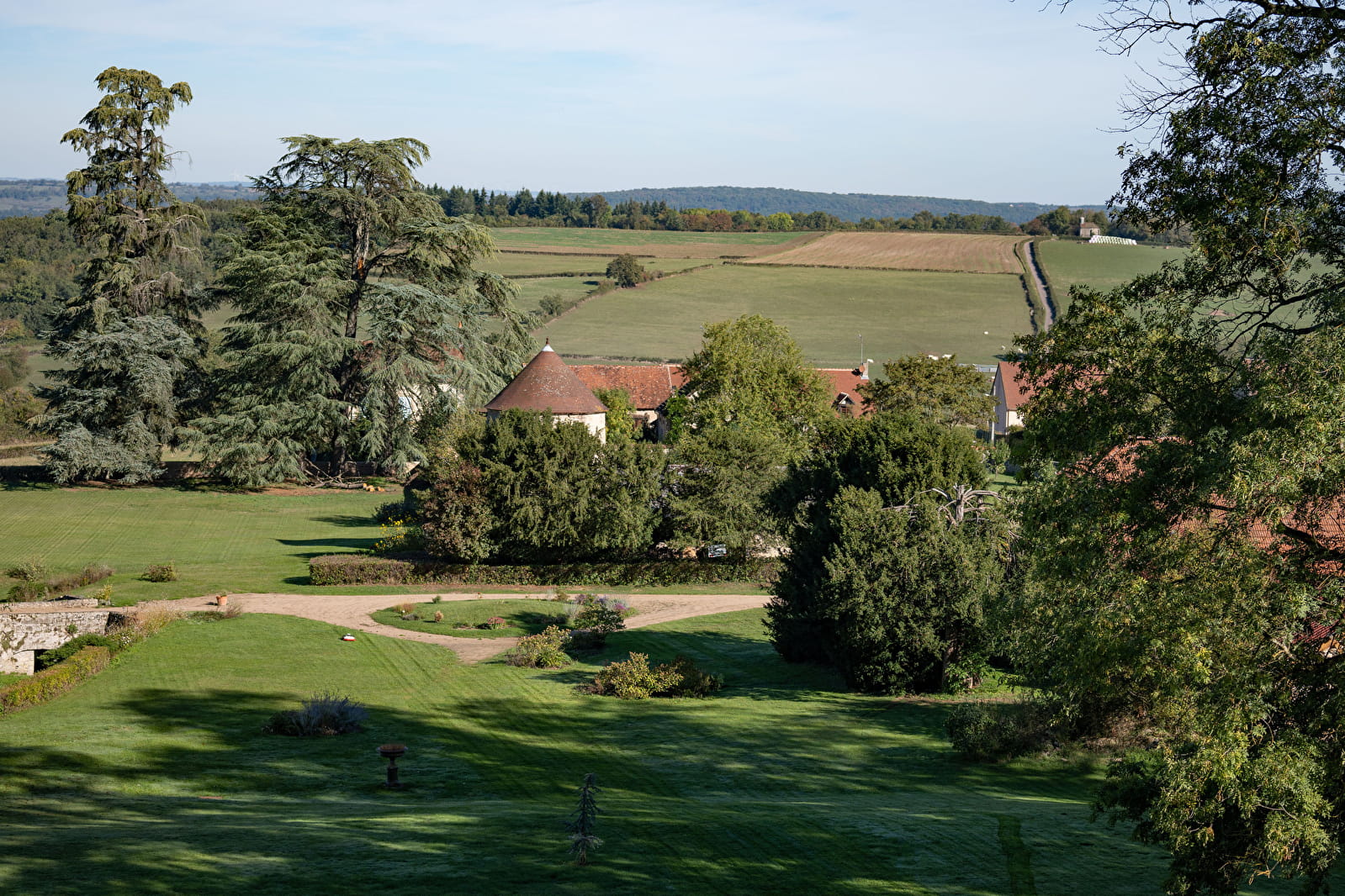- À la croix empruntez la route sur la gauche (château de Morlet à droite) et au carrefour, à droite. Vous pourrez observer l'imposante porterie du château sur la droite. Juste après celle-ci, prendre le chemin herbeux qui monte à droite et qui nous ramène au carrefour du départ.