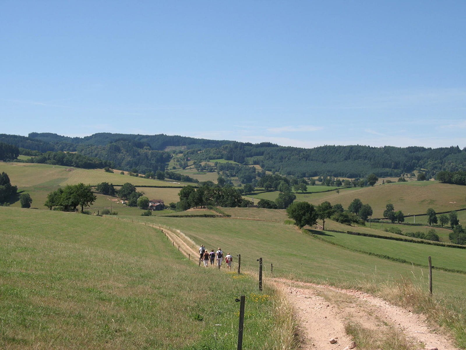 Départ place de l’église. Longez le stade, chemin piétonnier. Traversez la D987 au cimetière, route communale pendant 1,5 km, ancien pont de pierre pour franchir le Sornin, rivière de 1e catégorie, longez l’ancien moulin de Roncemay. A 300 m en haut, petite montée, à droite, et empruntez le chemin jusqu’à La Beluze et à gauche traversez le hameau de La Beluze, au carrefour à droite, traversez La Macelle. Continuez 500 m et à gauche (beau point de vue sur le village) ; hameau de Vervaux puis Les Guinets, en montant à mi-pente vue sur la montagne de Dun avec la Chapelle, arrivée au hameau de La Faux. Prendre à gauche sur 2 km jusqu’à la Croix des Gachets. Chemin qui descend entre deux haies, puis à droite, aux Ronzeaux prenez le chemin en sous-bois jusqu’au hameau de La Velle. A gauche, traversez la D987, hameau de La Tuillière ; à gauche derrière le hangar, puis à gauche jusqu’au Mont. A droite continuez la route sur 200 m, prendre le chemin, longez de belles maisons en pierre, hameau de Champerny, à droite, ferme d’élevage de race charollaise et continuez jusqu’à la vierge du Mollet. Tournez à droite retour au bourg de Varennes sur tronçon commun avec circuit VA1. Sur la droite Château de Grandvaux.