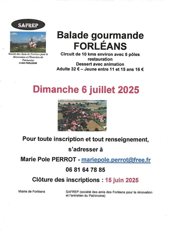 La SAFREP associée à la municipalité de Forléans vous propose dimanche 6 juillet 2025 une balade gourmande à travers la campagne forléanaise sur un parcours d’environ 10 kms. Comme les autres années, vous aurez des haltes restauration :