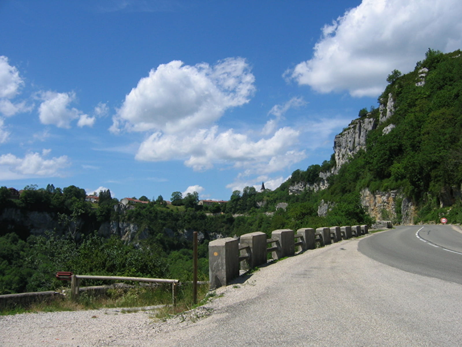 Parcours : Descendre. En bas, à droite pour le porche de la grotte Quitter le site par escaliers. Descente jusqu’à la passerelle (cascades et falaises), la traverser et rejoindre l’ain (0h20) . Après la montée à gauche jusqu’au croisement, à droite pour le retour.