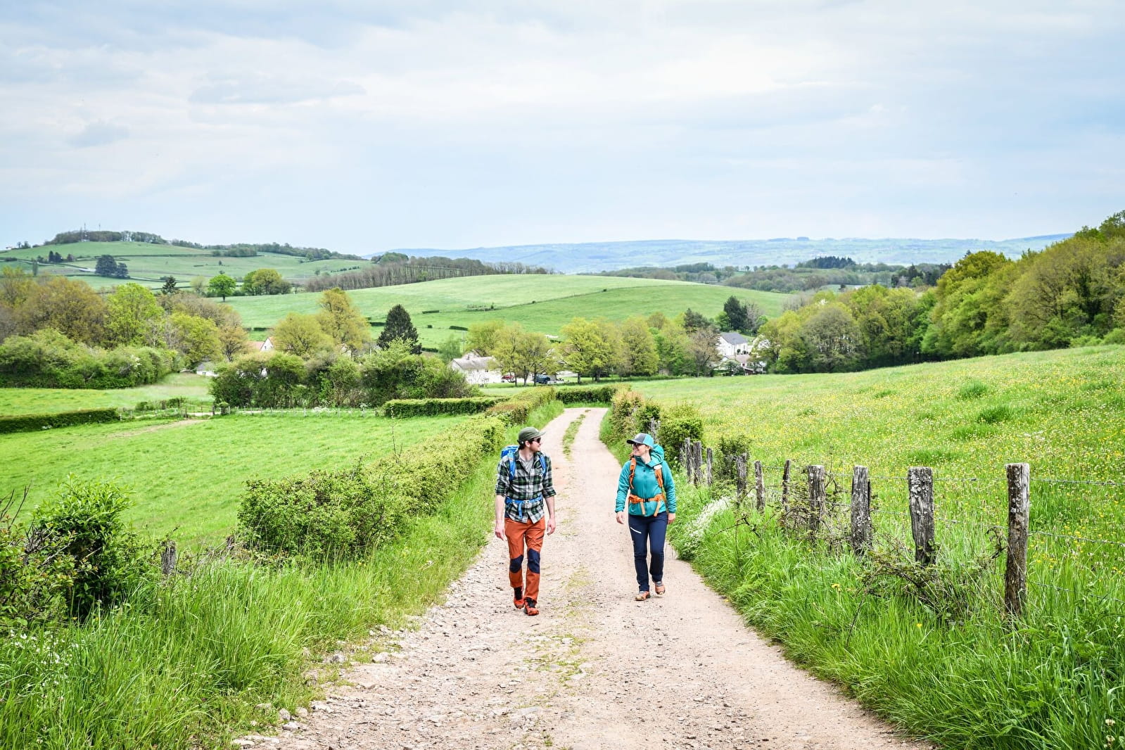 Prenez la route en face et traversez l'Eschenault. Après les maisons, prenez à gauche un chemin jusqu'aux Cléments. Vous arrivez sur la D500, prenez-la à droite quelques mètres puis à gauche vers le nord.