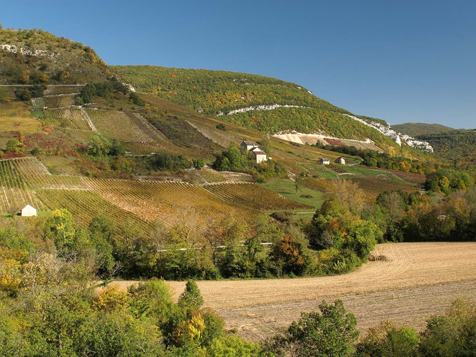 La cave est située au cœur d'une ferme de production de vin mais aussi de céréales. Un environnement au calme pour découvrir le terroir bugiste. Vente directe à la ferme.