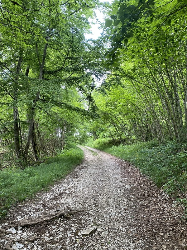 Le circuit menant jusqu'au belvédère de St Julien contourne les falaises de Saint Benoit pour offrir une vue imprenable sur le Rhône jusqu'au nord de l'Isère d'un côté, et de l'autre le Mont Blanc, la chaine des Alpes, la dent du Chat, le défilé de Pierre Chatel et une partie du Bugey Sud.