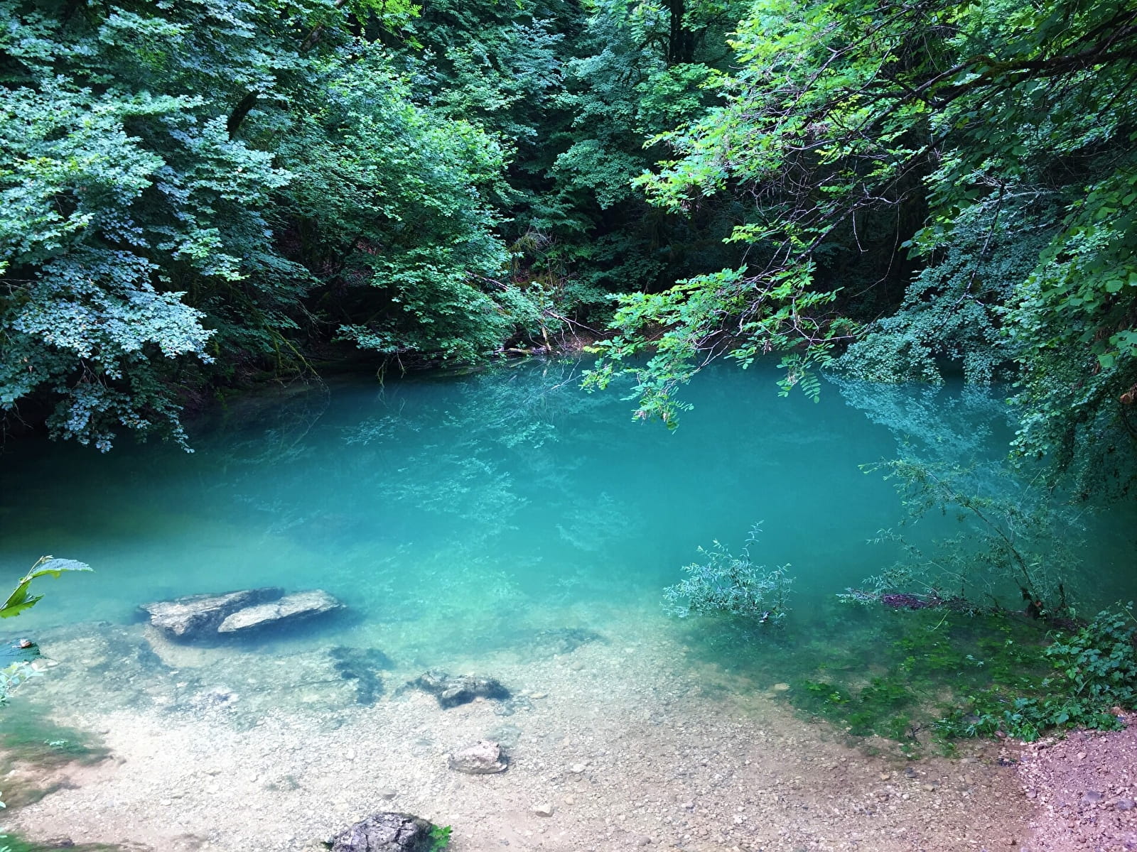 Idéale pour les familles, cette randonnée au départ de Champagne-en-Valromey suit le cours de la rivière sauvage de l'Arvière jusqu'à la Source du Groin, impressionnante résurgence de couleur émeraude.