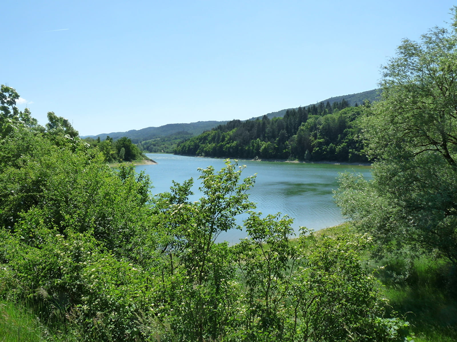 - Le plan d'eau d'eau de l'Oignin avec les ruines découvertes ou submergées