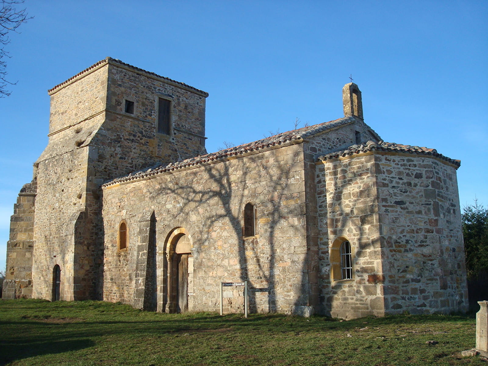 Contourner le massif jusqu'à la route de la croix du Ban. Prendre à droite sur 10 m et prendre la D20 à gauche sur 350 m (marcher sur la bande herbée à droite de la chaussée). Au carrefour, prendre la route à gauche (D649.1) sur 250 m. Emprunter le chemin à gauche qui descend. Rejoindre l'entrée du hameau le Gay, prendre à droite la route de Montmelas sur 50 m puis prendre le chemin à gauche l’impasse du Peillon. Traverser la route de la croix du Ban et prendre en face le chemin qui monte en direction du col de Failly 2 km. Au col du Failly, prendre le 2ème chemin à gauche qui monte et rejoindre le col de Saint- Bonnet. Traverser le carrefour et prendre le chemin de droite pour rejoindre la chapelle de Saint-Bonnet. Poursuivre le chemin qui descend.