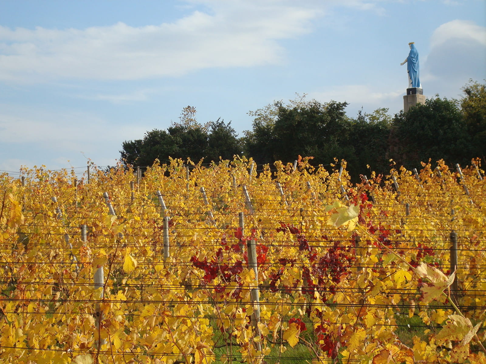 Prendre à gauche la route de Saint-Bonnet sur 200 m puis prendre le chemin à droite qui descend. Passer sous le cimetière de Montmelas, poursuivre par le chemin dans les vignes. Traverser la D649-1. Poursuivre le chemin dans les vignes et les champs. Attention ! Prendre le chemin à gauche de la cadole le long des fils barbelés en direction de la gauche de la carrière de Ghorr. Rejoindre la route des Grandes Terres, prendre à gauche le 1er chemin en épingle et rejoindre à droite le chemin passant par « Le Montoux ». Prendre le chemin de
