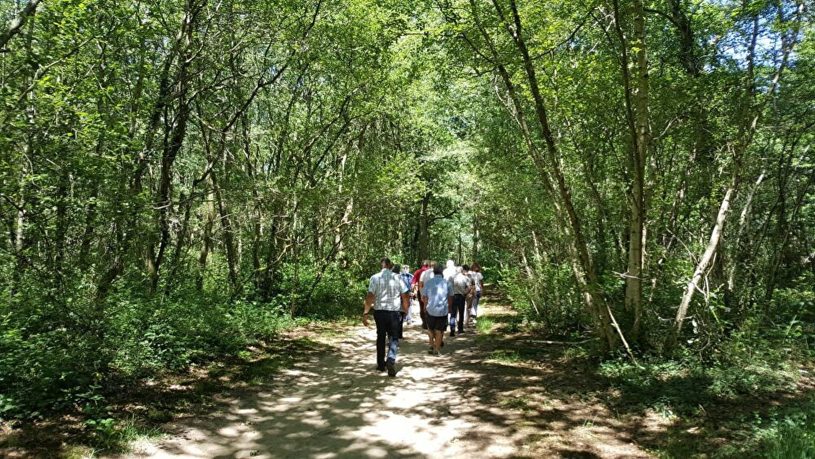 (11) Passer devant les bâtiments à gauche et poursuivre sur la piste, jusqu'au bois. Rester à droite deux fois, puis à gauche et longer la rive de l'Étang Butière.