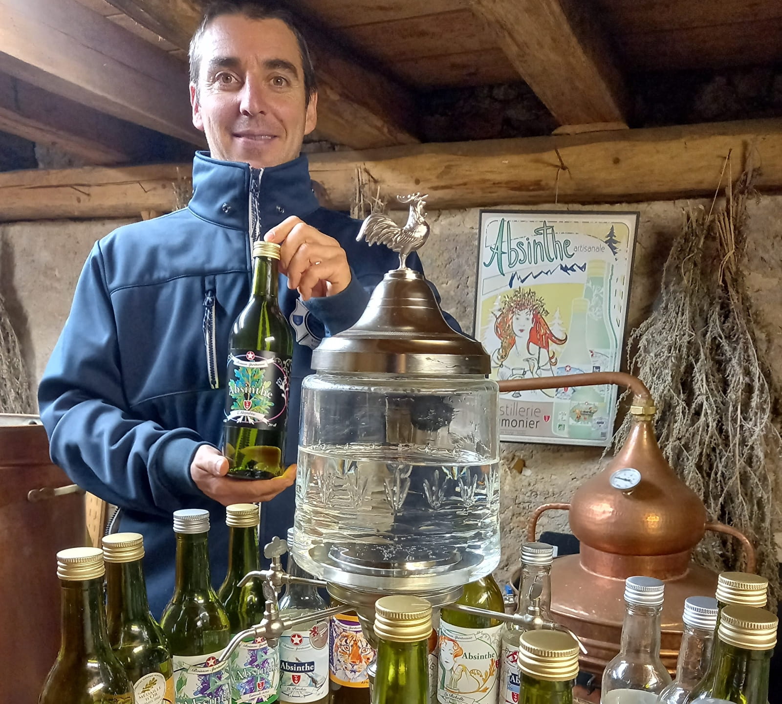 Première distillerie artisanale bio de la zone historique, nous distillons une vingtaine de recettes d'absinthes différentes ainsi que des anisés, de la vodka, du gin, un apéritif à la gentiane et des liqueurs.