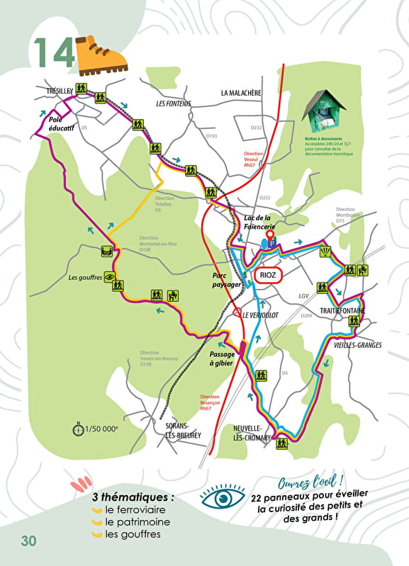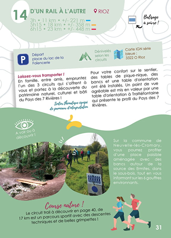 Suivre le balisage du rail bleu, départ au lac de la faïencerie à Rioz.