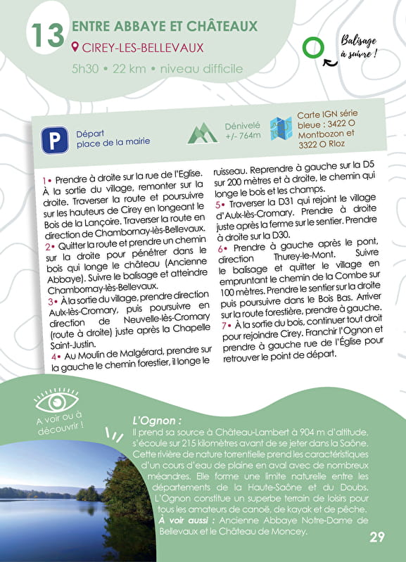 7• à la sortie du bois, continuer tout droit pour rejoindre Cirey. Franchir l’Ognon et prendre à gauche rue de l’église pour retrouver le point de départ.