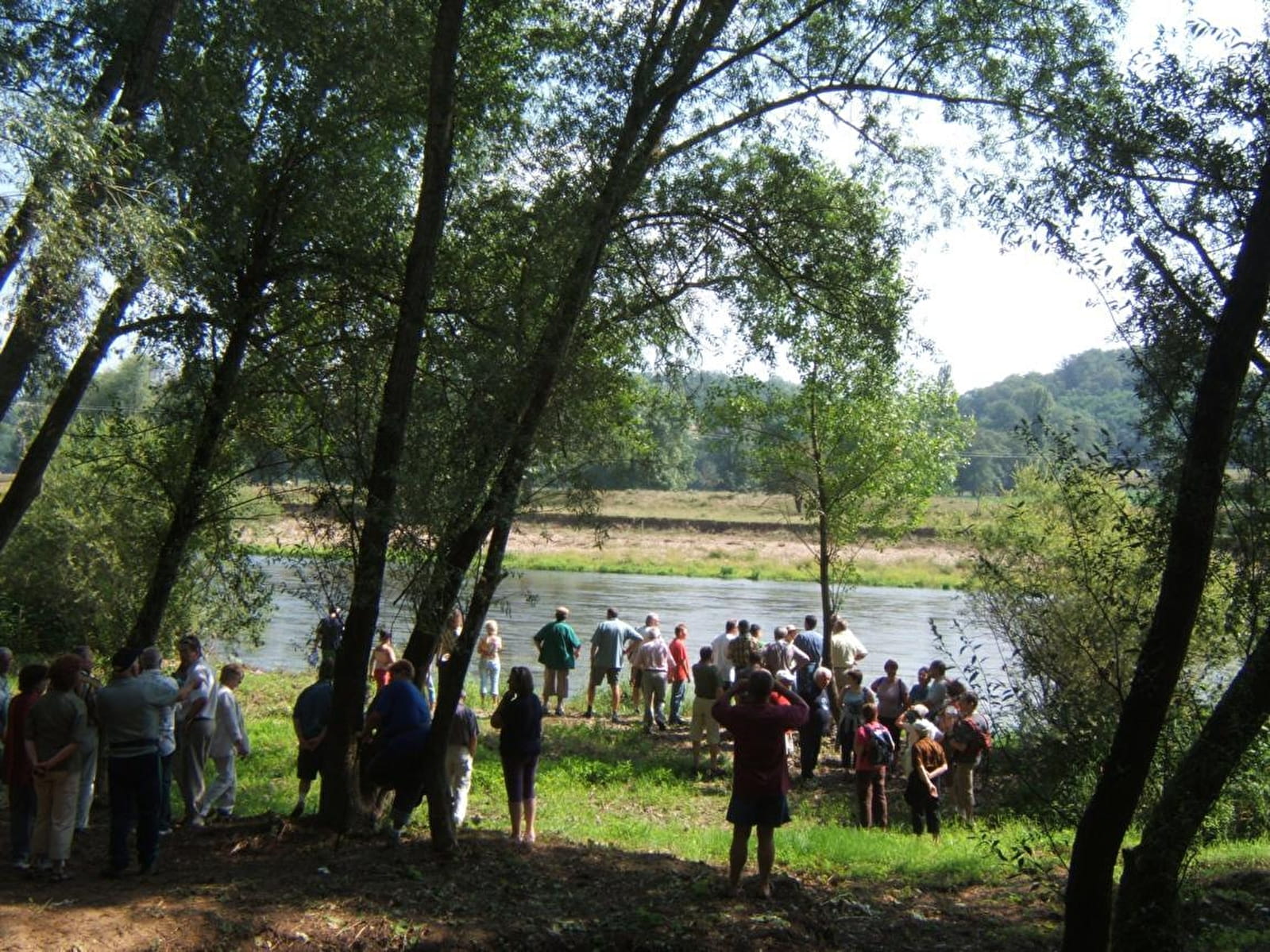 4 À l’intersection, s’engager à droite dans le chemin en contrebas. Suivre ensuite, le sentier de découverte équipé de différents panneaux [ > d’interprétation thématiques] (canal, Loire, faune et flore) et d’un jeu questions/réponses sur la ripisylve.