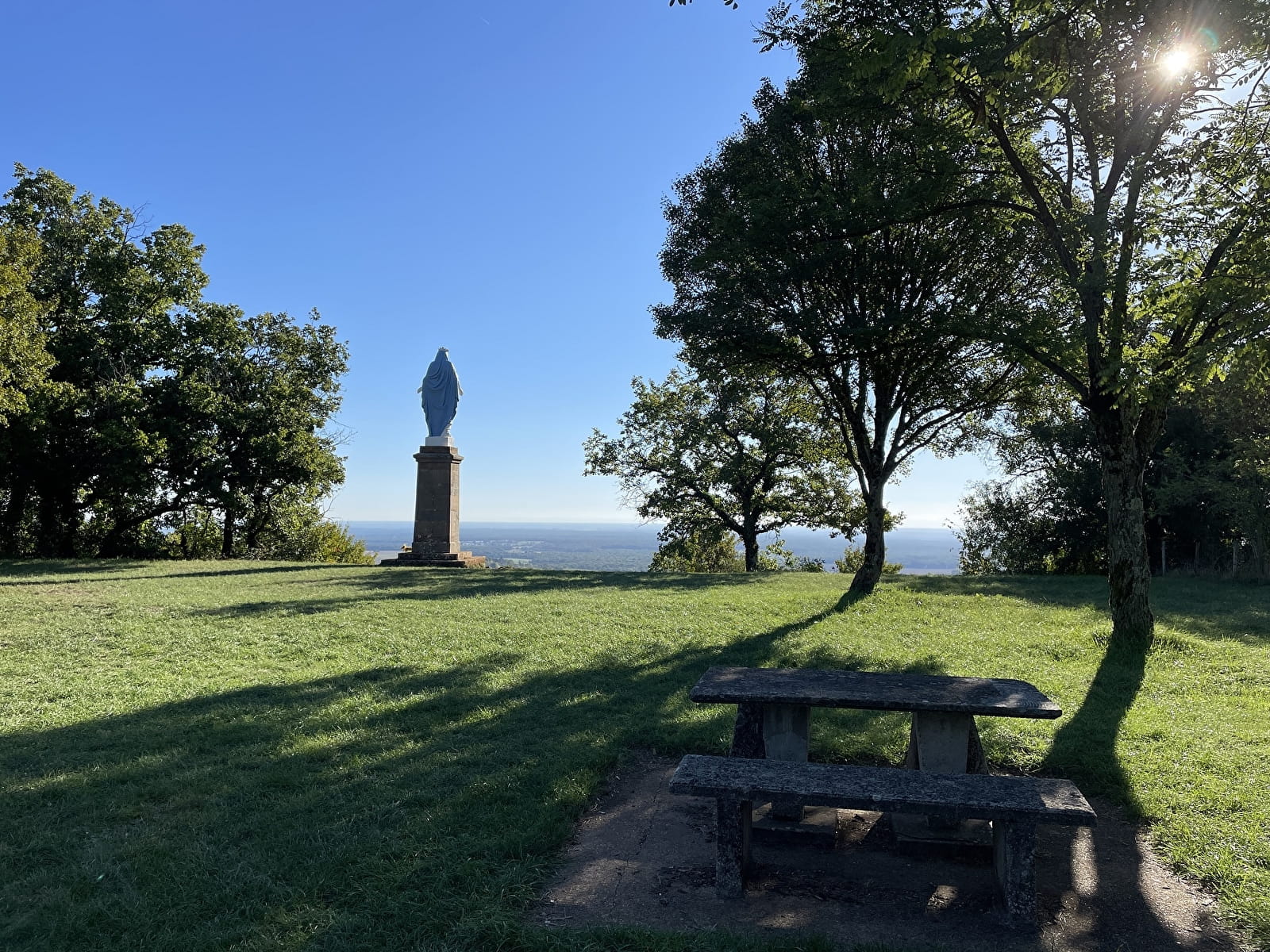 1 - Du parking, laisser la statue de la Vierge à gauche [ > point de vue] et emprunter le chemin empierré vers le sud en direction de Lacassine.