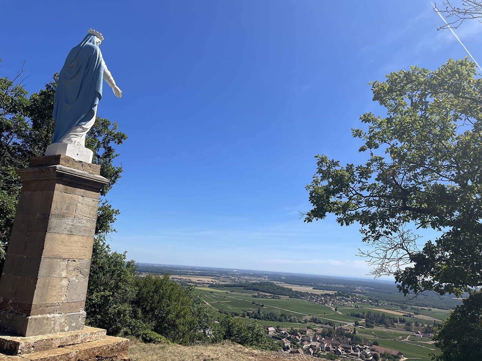 Dépasser les hangars et parvenir en bordure d’une aire de pique- nique [ > vue sur le vignoble, table d’information sur les Climats de Montagny-lès- Buxy].