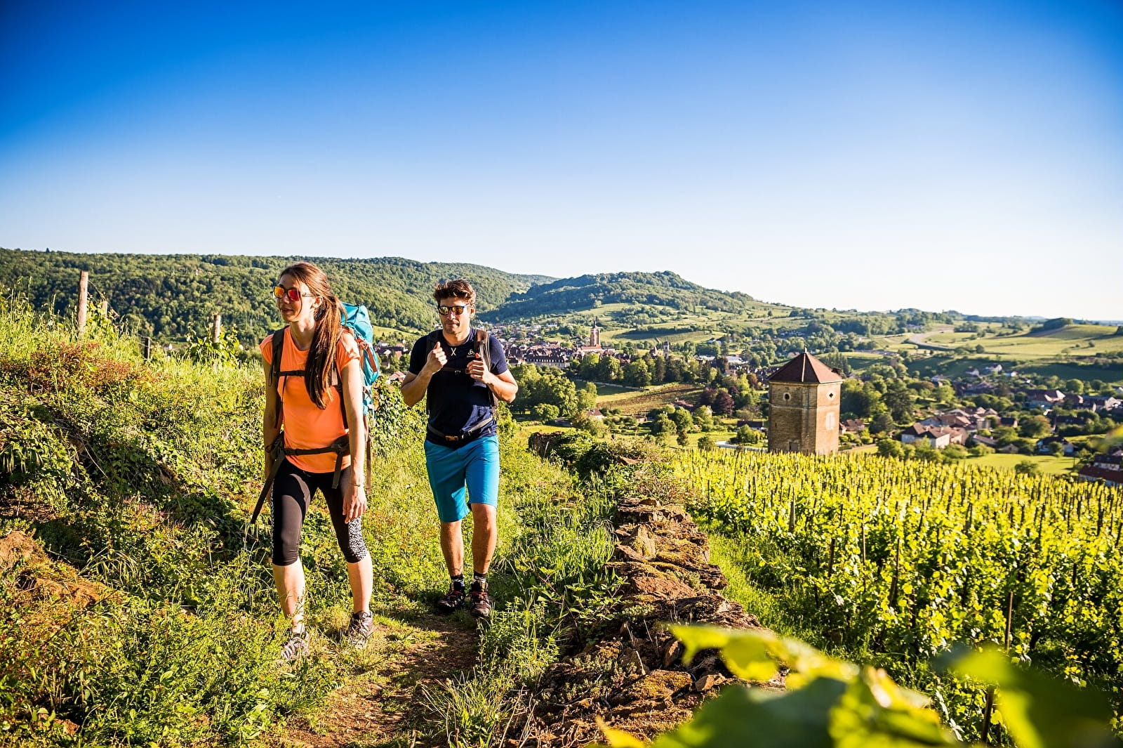 En provenance du Ballon d'Alsace, ce GR traverse le département du Jura du Nord au Sud sur 225km par le Vignoble du Revermont. Depuis Dole, ville natale de Louis Pasteur ou depuis Salins-les-Bains jusqu'à Saint-Jean d'Etreux (à coté de Saint-Amour), ce GR traverse le Vignoble Jurassien en passant par quelques unes des plus belles cités du département : Salins-les-Bains, Arbois, Poligny, Lons-le-Saunier, Saint-Amour, Château-Chalon et Baume-les-Messieurs...