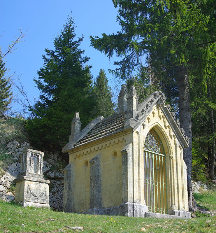 Depuis la vallée du Doubs jusqu’au plateau qui la domine, ce circuit traverse bois et communaux. Il passe à proximité de l’église Saint-Nicolas et de son superbe clocher-porche de 1749. Le cheminement conduit près de la Chapelle Notre-Dame des Côtes édifiée en 1871 et de son très bel oratoire. Celui-ci est adossé à une barre rocheuse dominant la route de Pontarlier. Il offre une belle vue panoramique sur la vallée du Doubs et ses méandres en aval du lac de Saint-Point.