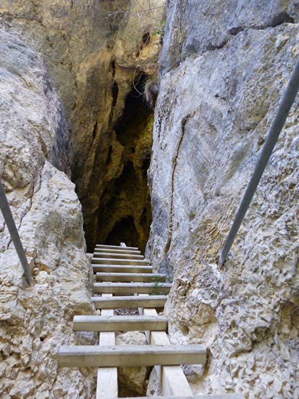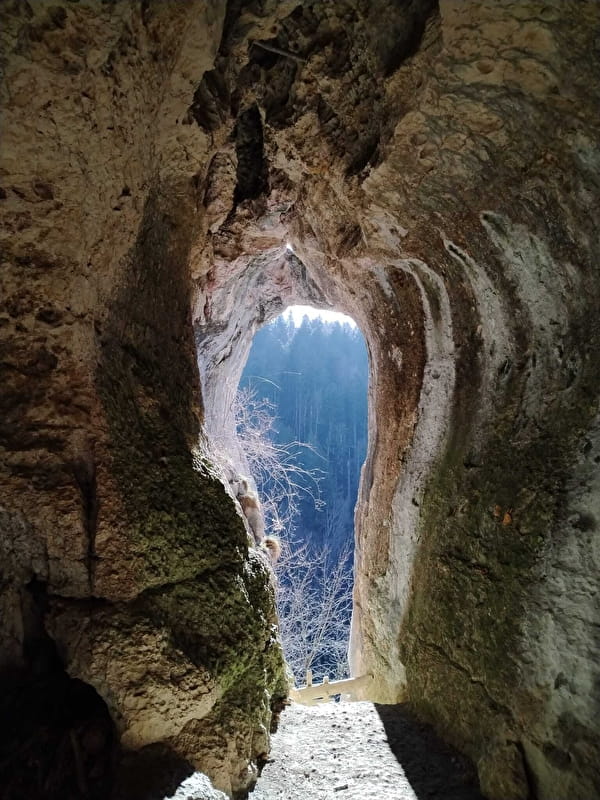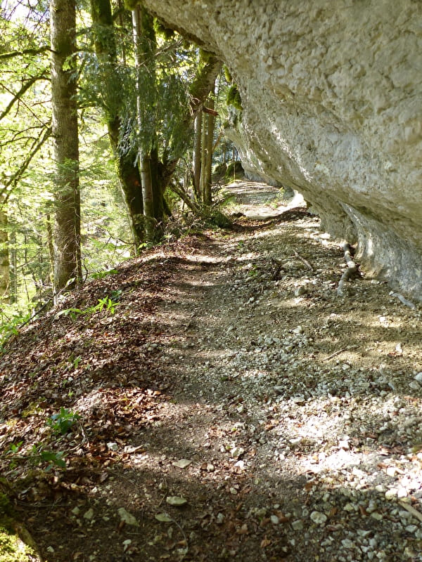 Randonnée à l'abri des arbres dans une ambiance montagneuse, mousse sur les arbres, parois rocheuses et grotte.Les plus téméraires (échelle à monter) pourront se rendre dans la grotte (à 13 mètres de hauteur). C'est là que se sont réfugiés les habitants de Grand'Combe-des-Bois durant l'invasion des armées suédoises en 1636.