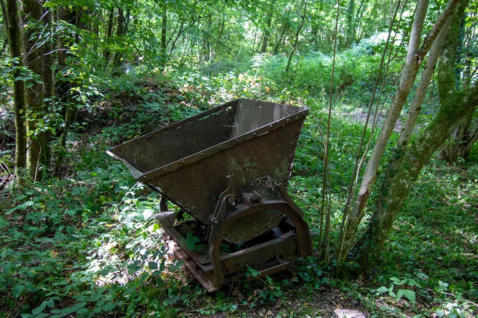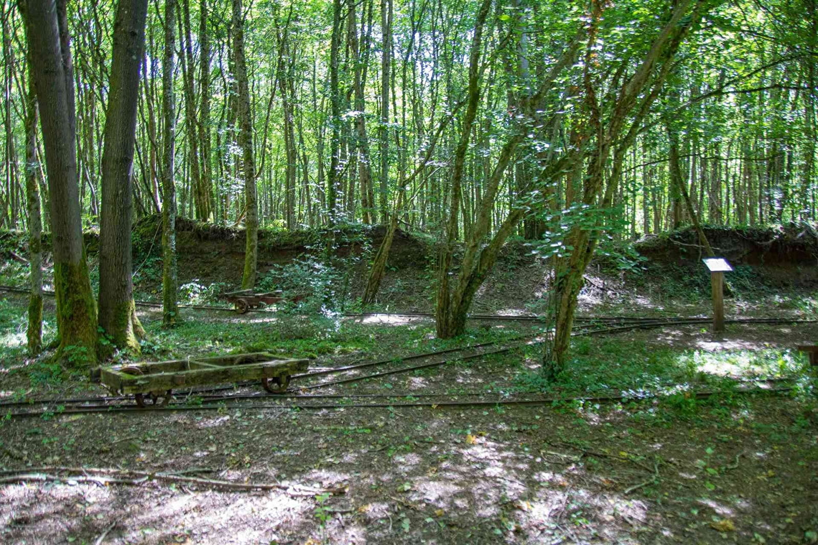 (12) Déboucher sur une clairière avec en face, quelques tables de pique-nique, une forge et une réplique de bas fourneau installées par l'association du Ferrier de Tannerre. Ne pas aller plus loin (sauf pour une visite plus approfondie). Tourner sur la droite, direction le Puits. Passer devant cet ancien puits à main droite, poursuivre en obliquant légèrement sur la gauche.
