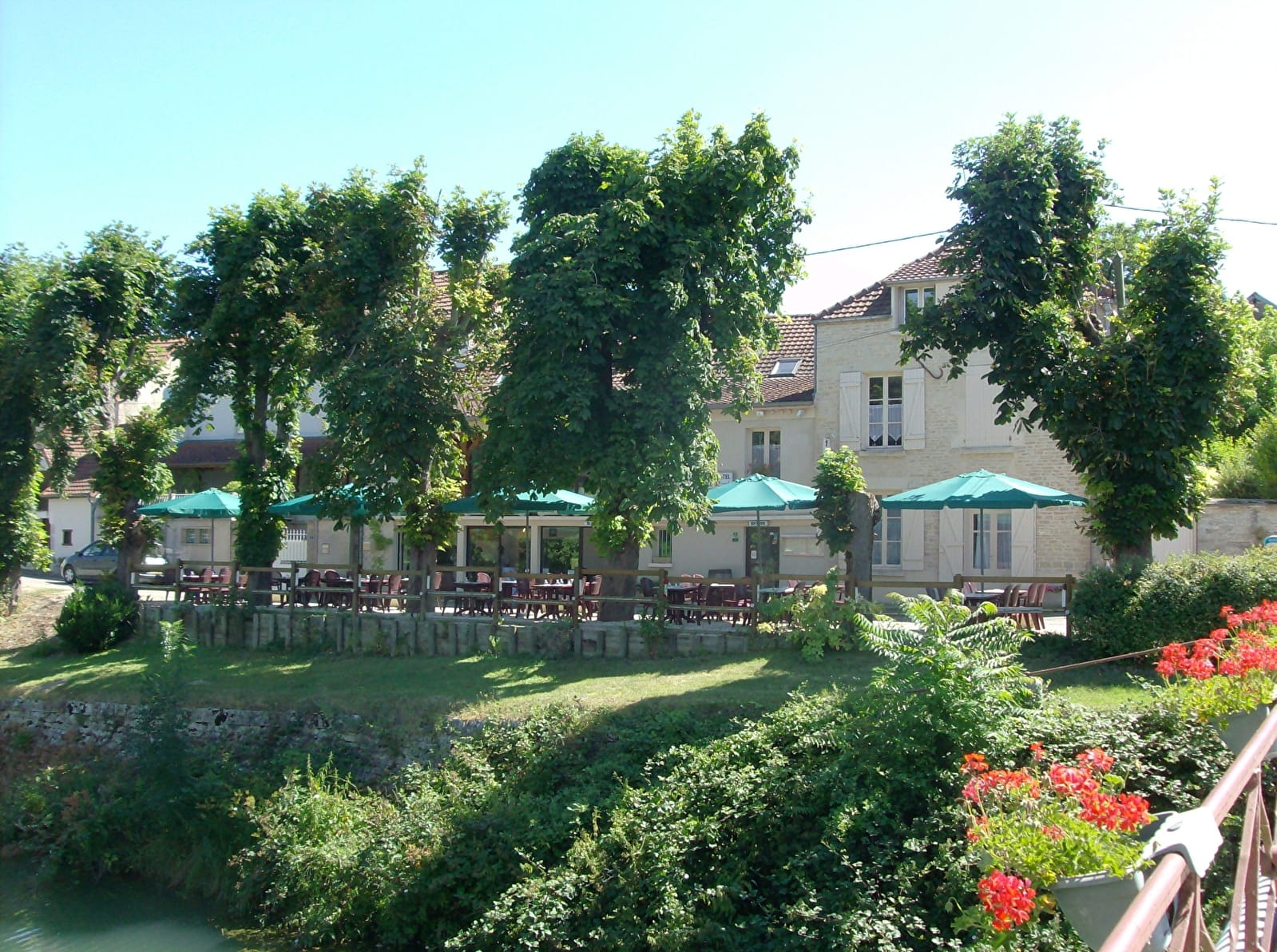 Terrasse au bord du canal de Bourgogne ombragée par de beaux marronniers. A l'étage, une autre terrasse entièrement vitrée avec vue sur le canal de Bourgogne. Au même niveau, une autre salle rustique, qui a conservé la chaleur du temps passé. Le chef réalise des spécialités bourguignonnes comme les œufs en meurette, le sandre à l'aligoté ou le jambon à la chablisienne.