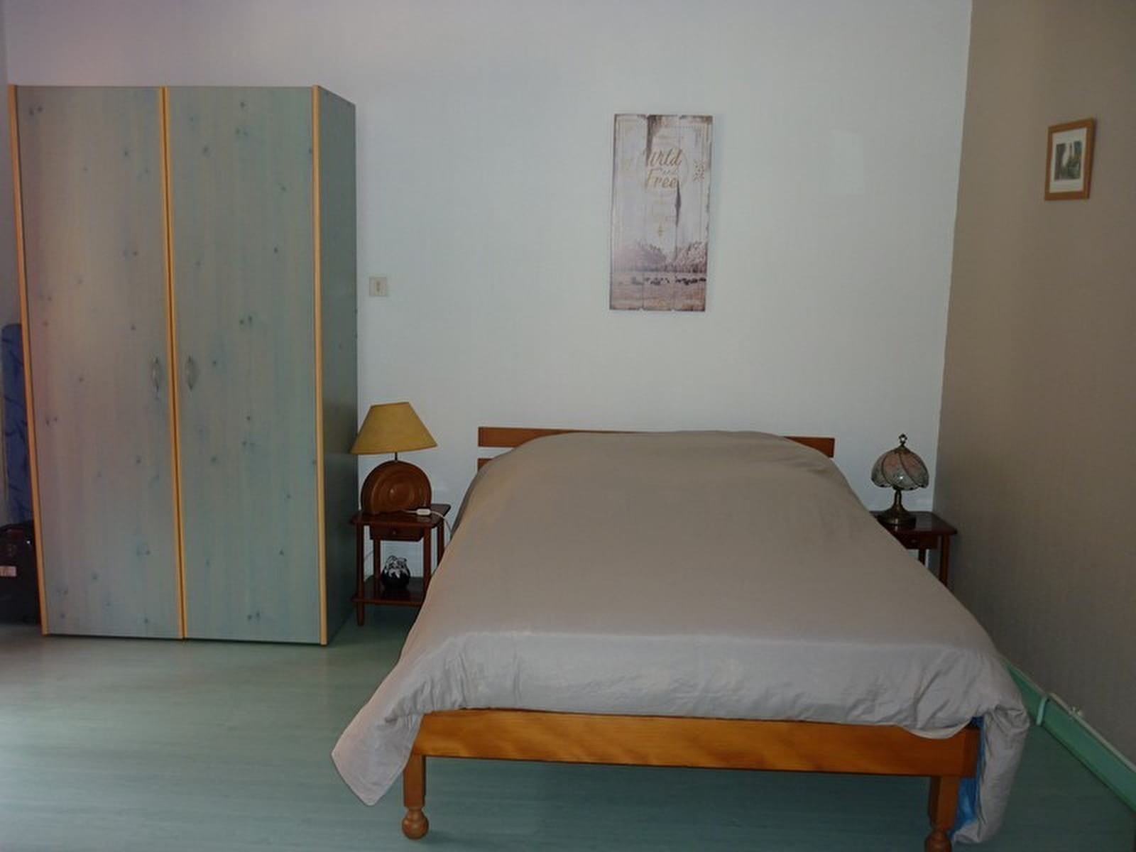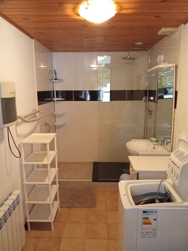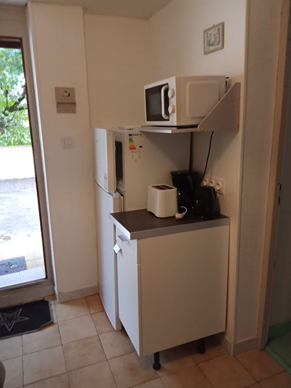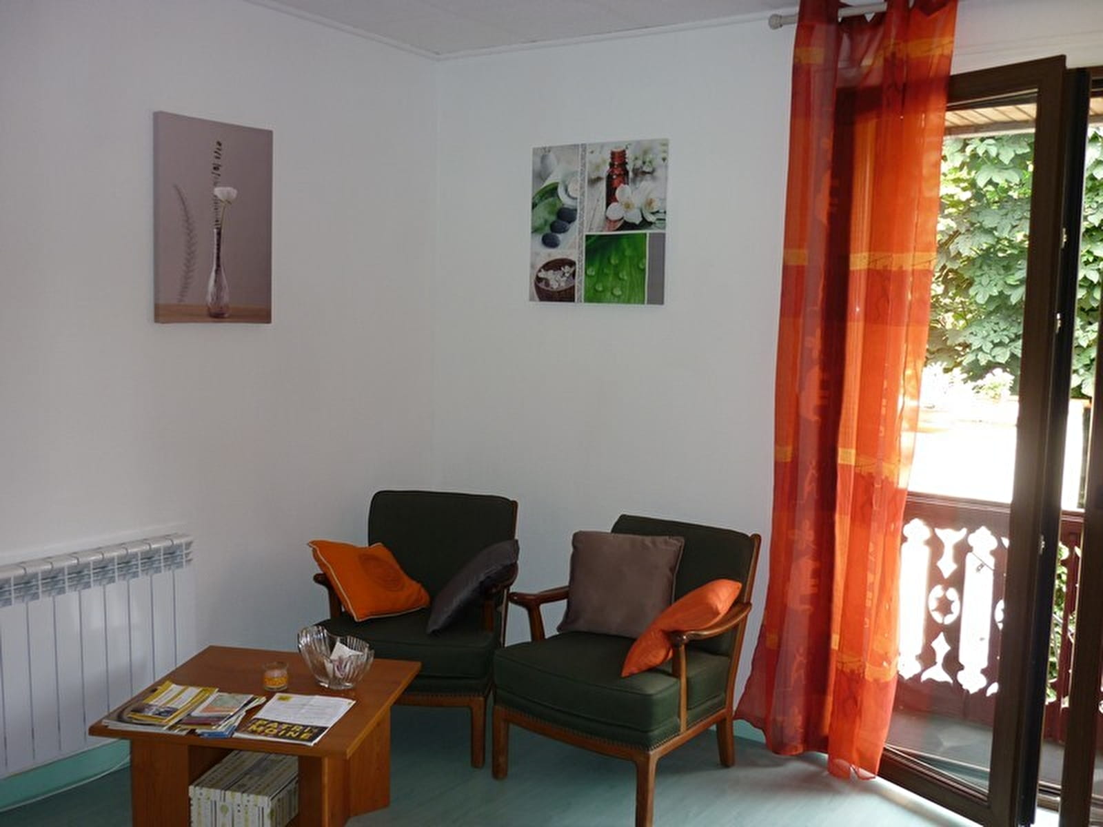 Quartier calme face aux thermes. Meublé tout confort 30m². Cuisine équipée. Chambre/salon avec grand lit 2 personnes 140x190, TV, salle de bain-WC. Sèche-cheveux. Terrasse. Parking privé.