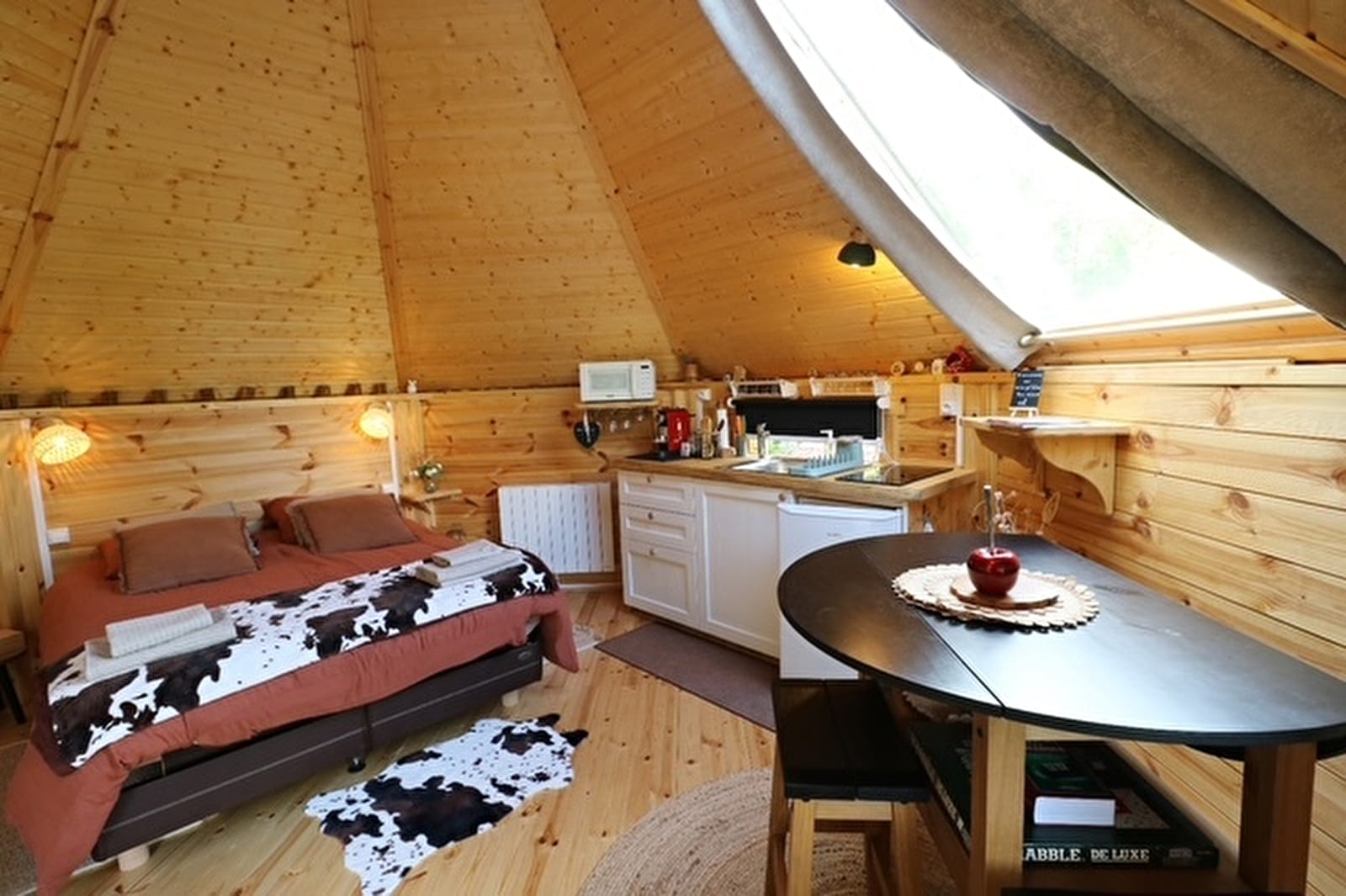 KOTA GRI’HÔTES est un hébergement insolite tout confort et cocooning surplombant notre terrain, entouré d’arbres et de verdure.
