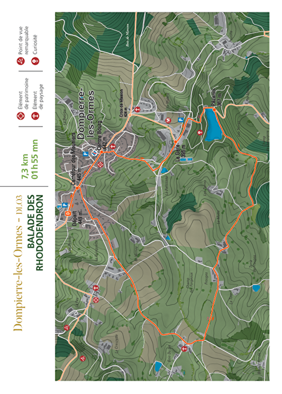 Du parking du camping des Meuniers, se diriger vers le centre de Dompierre-les-Ormes. Arriver sur la D 41 (rond-point).