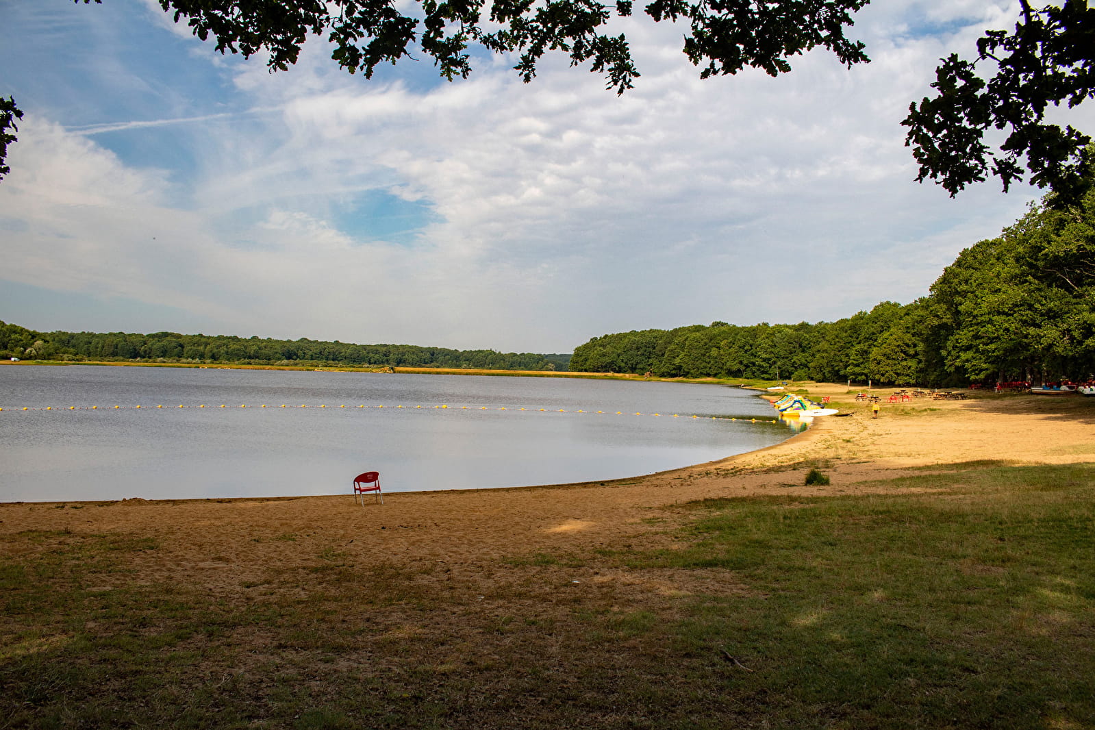(5) Revenir sur ses pas et, au croisement avec le chemin transversal, tourner sur la droite en prenant le chemin sableux ou bien longer la berge si le niveau d'eau le permet. Passer devant les lieux de restauration. En bout, obliquer à gauche, traverser la route avec prudence pour rejoindre le parking (D/A).