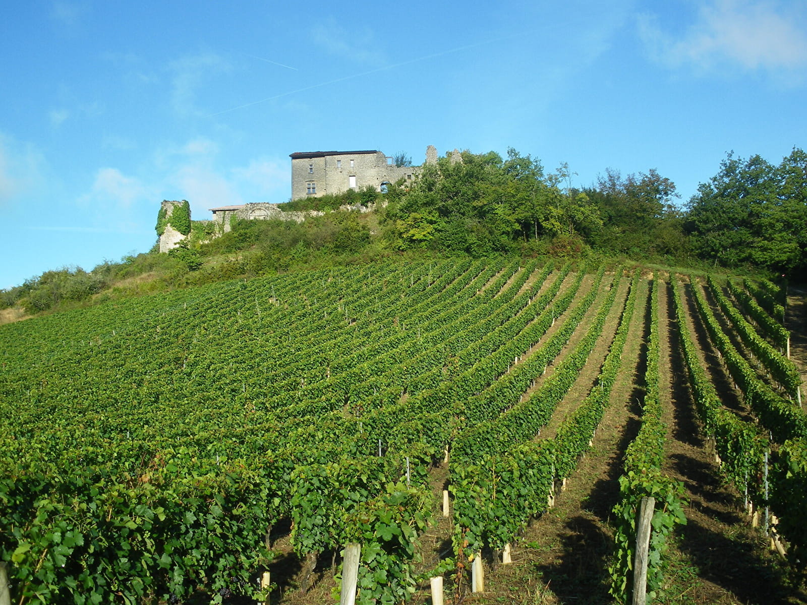 10. Km 11. Après avoir profité du panorama, quittez le château Le Châtelard sur votre droite et descendez en direction de Lhuire le Bas.