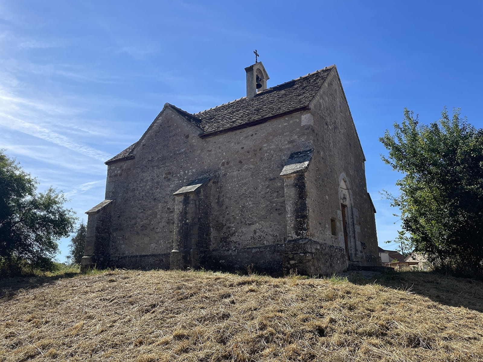 - Bifurquer à gauche avant les bâtiments, suivre le chemin tout droit. Sortir de la forêt et retrouver la mairie de SAINT-GERMAIN-LES-BUXY et le point de départ de la boucle.
