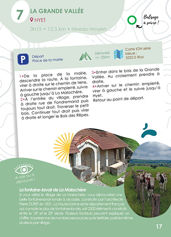 1•De la place de la mairie, descendre la route, à la fontaine, virer à droite sur le chemin de terre. Arriver sur le chemin empierré, suivre à gauche jusqu’à la Malachère.