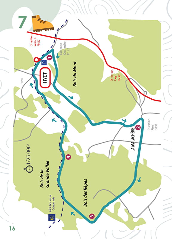 4•Arriver sur le chemin empierré, virer à gauche et le suivre jusqu’à Hyet.