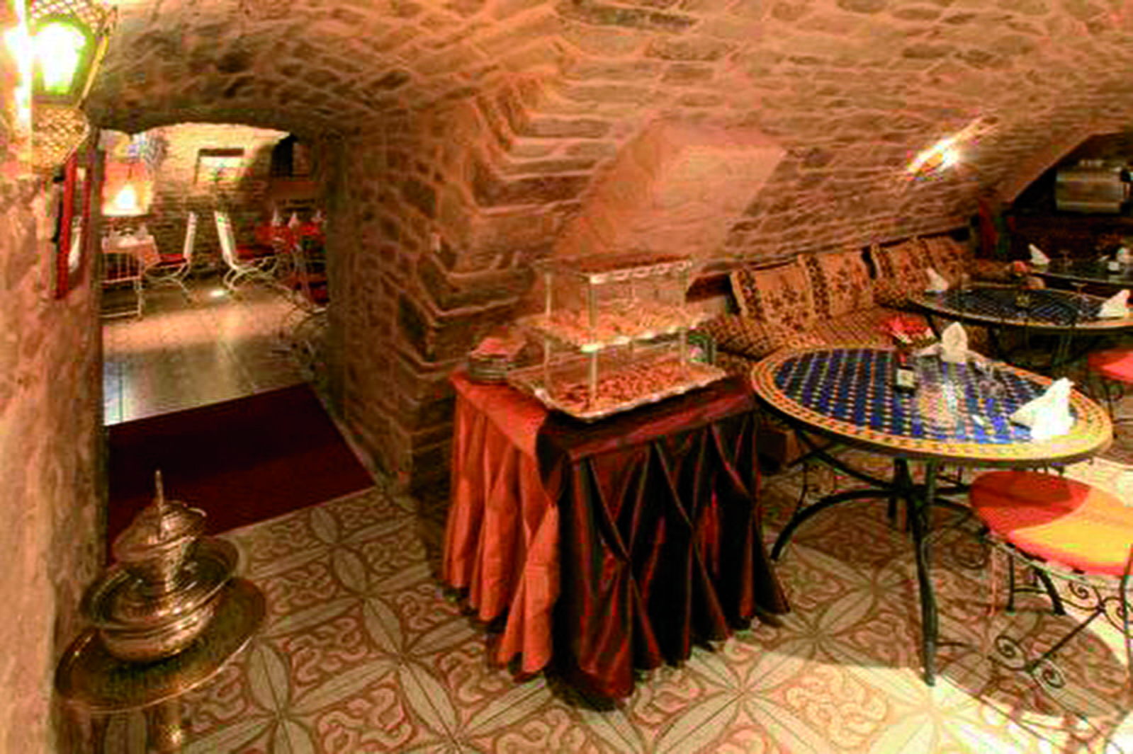 Cadre exceptionnel et dépaysant. Spécialités marocaines et méditerranéennes : tajines, couscous, pastillas, assiettes composées... Plats à emporter et soirées orientales avec danseuse.