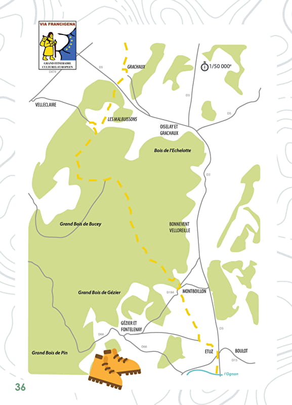 Le Pays des 7 Rivières est concerné par une dizaine de kilomètres qui mènent à l’étape historique de Cussey-sur-l’Ognon, seul point de franchissement de la rivière à l’époque.