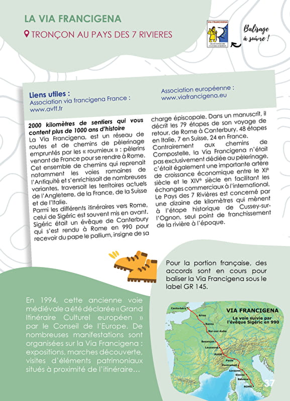n 1994, cette ancienne voie médiévale a été déclarée « Grand Itinéraire Culturel européen » par le Conseil de l’Europe. De nombreuses manifestations sont organisées sur la Via Francigena : expositions, marches découverte, visites d’éléments patrimoniaux situés à proximité de l’itinéraire…