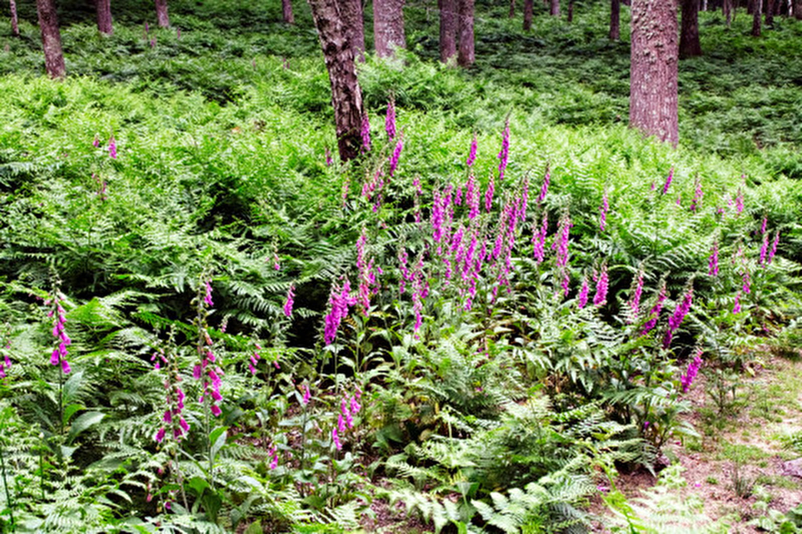 (6) Franchir cette allée tout droit. Rentrer en sous-bois et cheminer sur la trace régulièrement aménagée par des ponts de bois qui évitent les parties boueuses et marécageuses dues aux sources et rus nombreux. Arriver en surplomb de l'Étang des Midoux.
