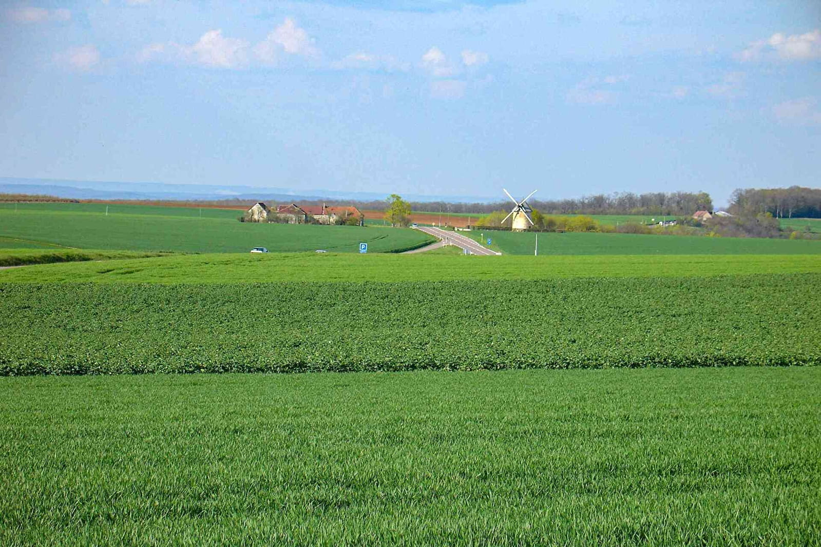 (7) Tourner franchement à droite dans le Chemin des Laves. Passer sous une ligne électrique. Au bout, continuer en face sur la route et aux premières maisons, continuer tout droit. Passer à hauteur du terrain de sports. Au panneau Stop, aller tout droit. Poursuivre dans la Grande Rue. Arrivé devant l'église, la contourner par la gauche. Au bout de cet édifice, virer à droite et rejoindre le point de départ (D/A).