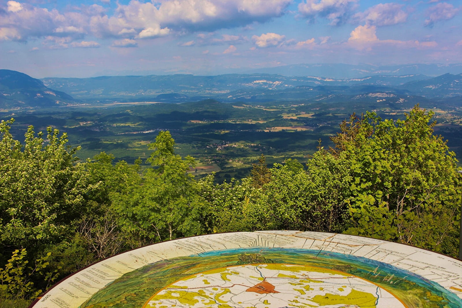 Une table d'orientation en apprend plus aux randonneurs curieux sur les sommets environnant. En suivant l'ancien parcours sportif, la randonnée aboutit à la croix d'Innimond, offrant un panorama à 360°C sur les monts du Bugey, son champion le Grand Colombier au loin, et un aperçu du lac d'Ambléon (non autorisé à la baignade). La descente finale est à suivre avec précautions jusqu'au retour dans le village.