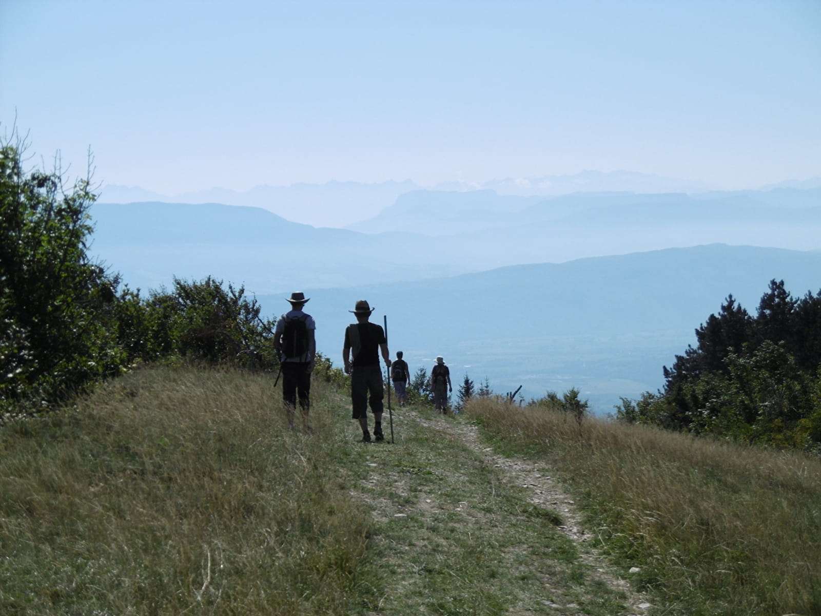 Depuis le charmant village d'Innimond, un sentier de randonnée en montée mène jusqu'au point culminant du Mont Pela. La suite du parcours pédestre suit les crêtes entre le col du Perthuis et Ordonnaz, le long du Tantanet. Un passage dégagé, avec une vue sur le Bugey, laissant peu à peu apparaitre les Alpes au loin. La surprise du chef arrive à la descente sur le col du Petit Perthuis. Face au déco de parapente, le Mont-Blanc se dessine pour les plus chanceux, sur les belles journées dégagées mais pas trop chaudes.