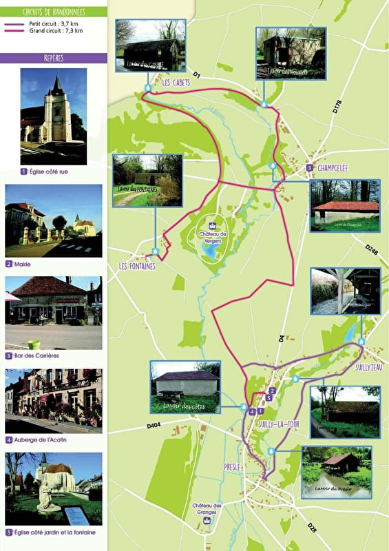 Le circuit des lavoirs de Suilly-la-Tour, vous fait découvrir le village et ses environs en longeant le Nohain et l'Acotin, rivières qui ont façonné la vie du Bourg. Vous profiterez également de nombreux lieux de pique nique sur votre parcours.