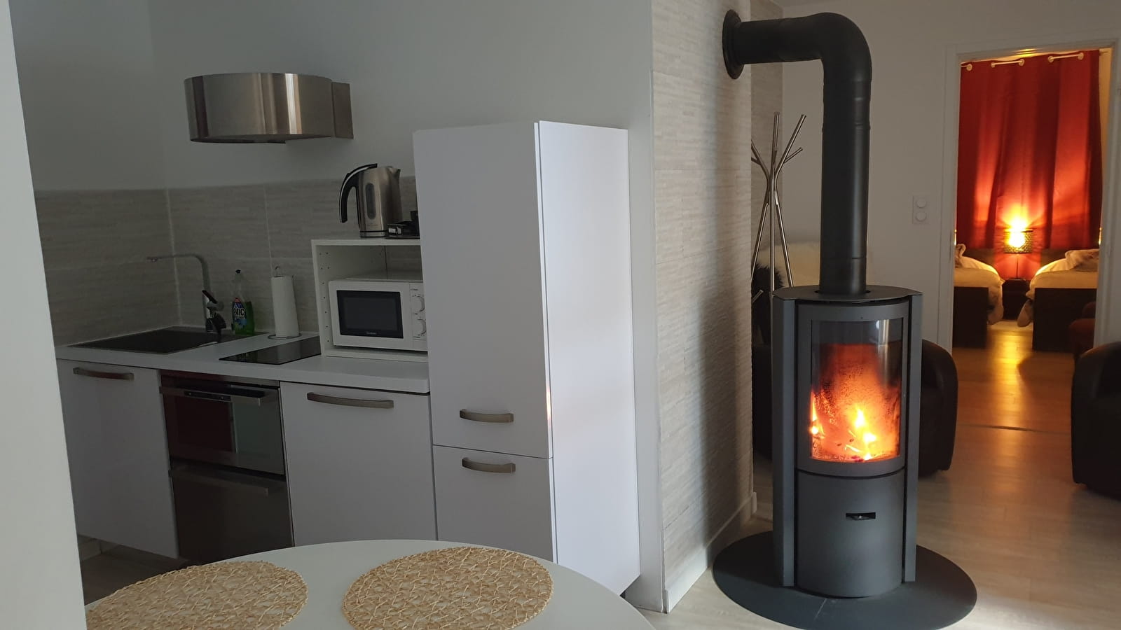 Suite appartement (2 pers.) avec cheminée, cuisine équipée, baignoire balnéo, charges comprises : 1450€ la semaine. Extension possible de la Suite: 165€ par personne supplémentaire. Capacité jusqu'à 4 pers. au total.