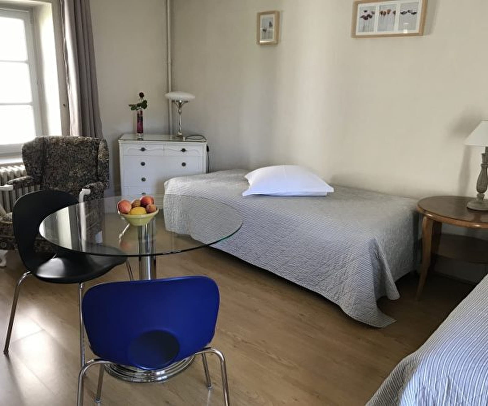 Maison de caractère. Face aux Thermes. 2 studios, 2 appartements et 1 duplex (en cous de classement). Vous trouverez calme et confort dans un très beau cadre. Parc. Parking privé. Linge fourni. Accueil personnalisé.