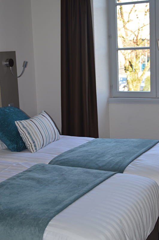 Centre ville, cadre calme, à proximité du Parc des Bains, 34 chambres tout confort, 2 salles à manger, 1 salle de réunion.