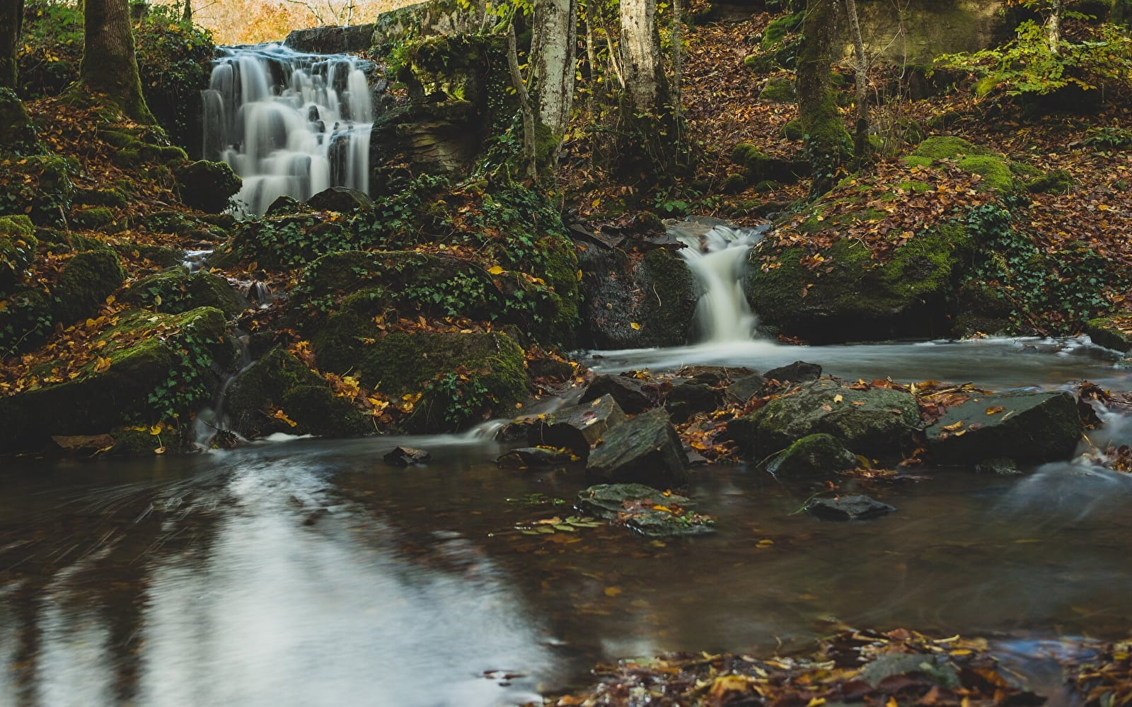 Petite cascade magnifique perdue au cœur de la forêt. Ilot de calme isolé de tout bruit de moteur, accessible à pied uniquement, à l'occasion d'une randonnée en forêt.