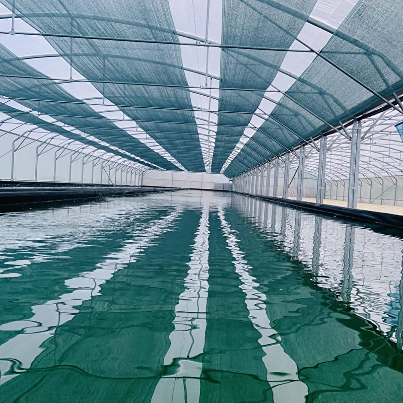 Elle se développe dans nos bassins sous 900m2 de serre en recréant au plus juste son milieu de vie naturelle et en respectant scrupuleusement son cycle de croissance, sans chauffage ni lumière artificielle, dans une eau tempérée grâce à l'énergie du soleil.