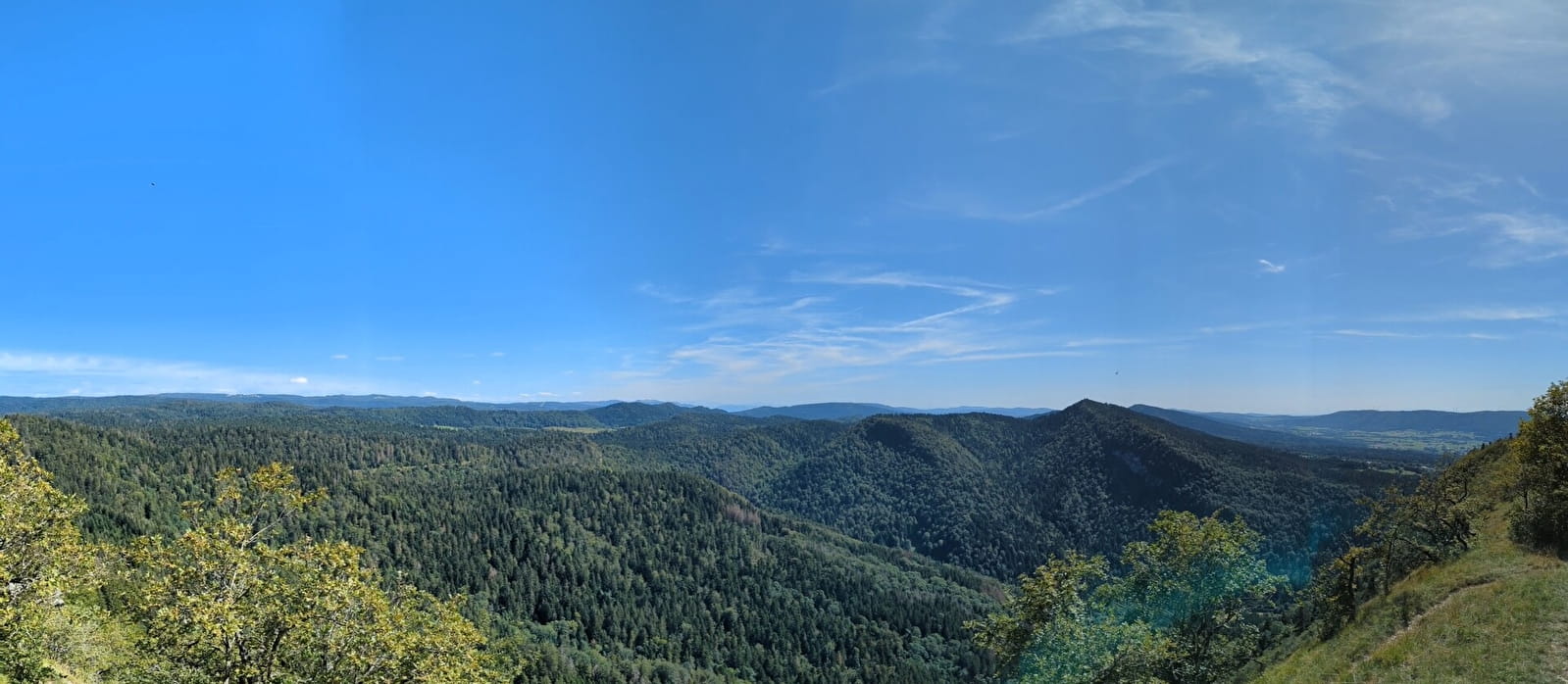 Vous trouverez au km 2 le superbe point de vue des « Doigts du diable » au-dessus du Lac de Nantua, continuer tout droit jusqu’au km 3.5 et tourner à gauche, profitez des sentiers très variés sur ce tronçon avec plusieurs points de vue sur le dernier km d’ascension jusqu’au km 7.3 sommet des Monts d’Ain.