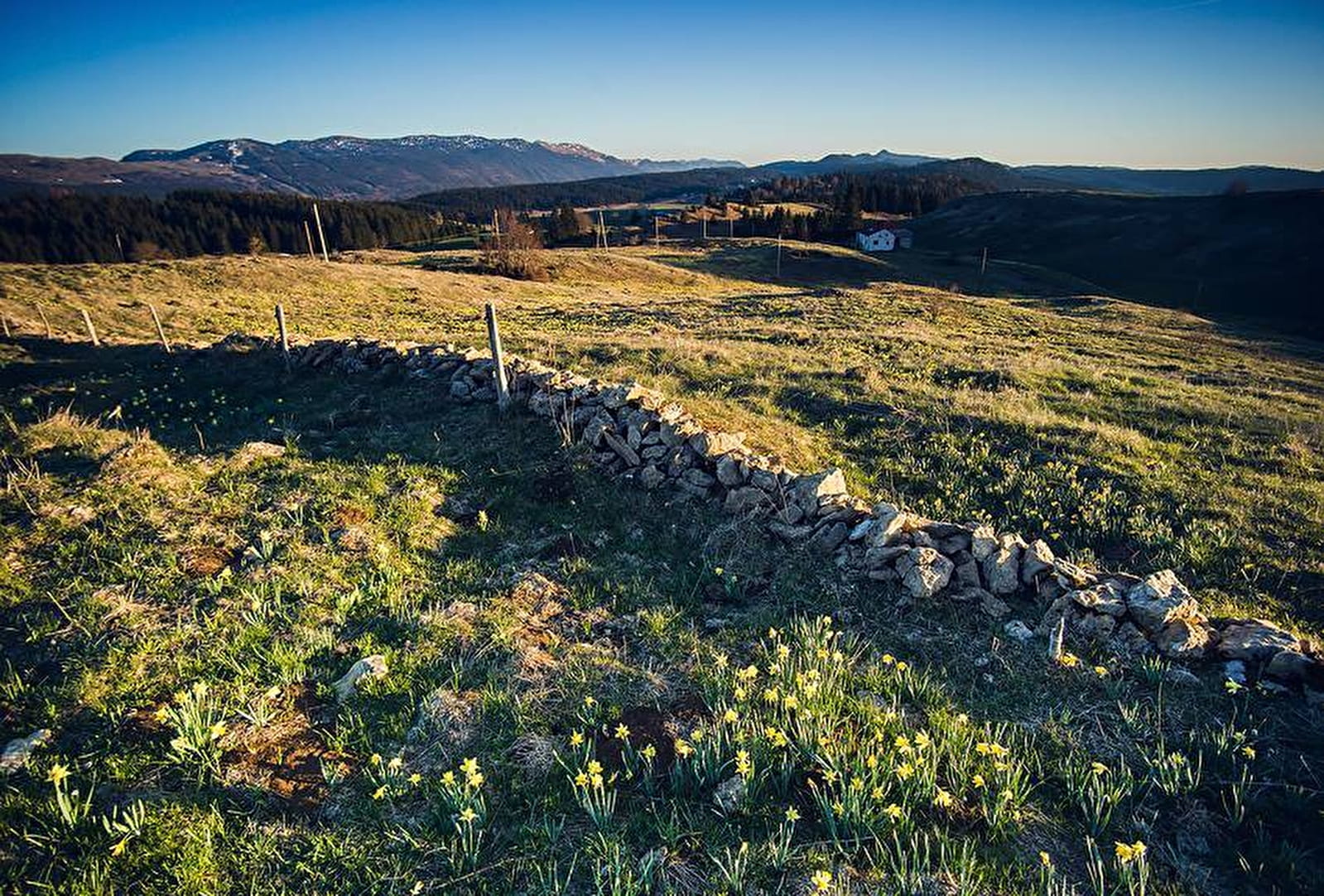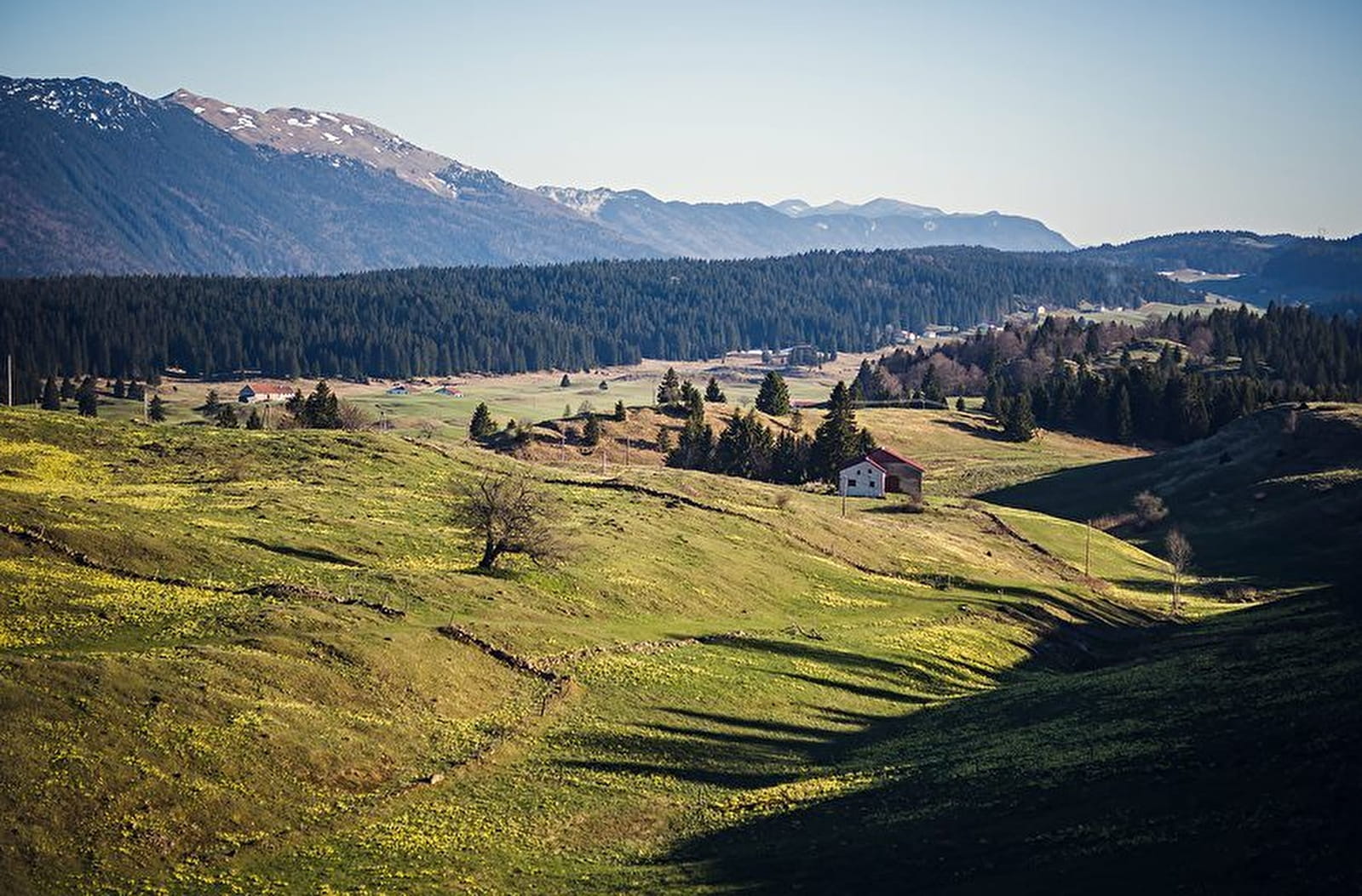 Joli parcours ouvert, à travers des pâturages d’altitude depuis Les Molunes, secteur qui se caractérise par son habitat dispersé. D’une combe à l’autre, s’éparpillent fermes et loges aux Platières, petit toit du monde jurassien !De ses multiples points de vue s’étirent la Haute-Chaîne du Jura et Bellecombe dans toute sa longueur, ponctuée du crêt de Chalam dressé comme un point d’exclamation !