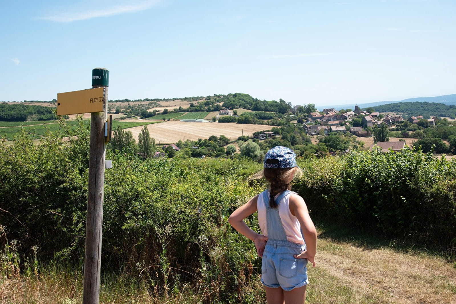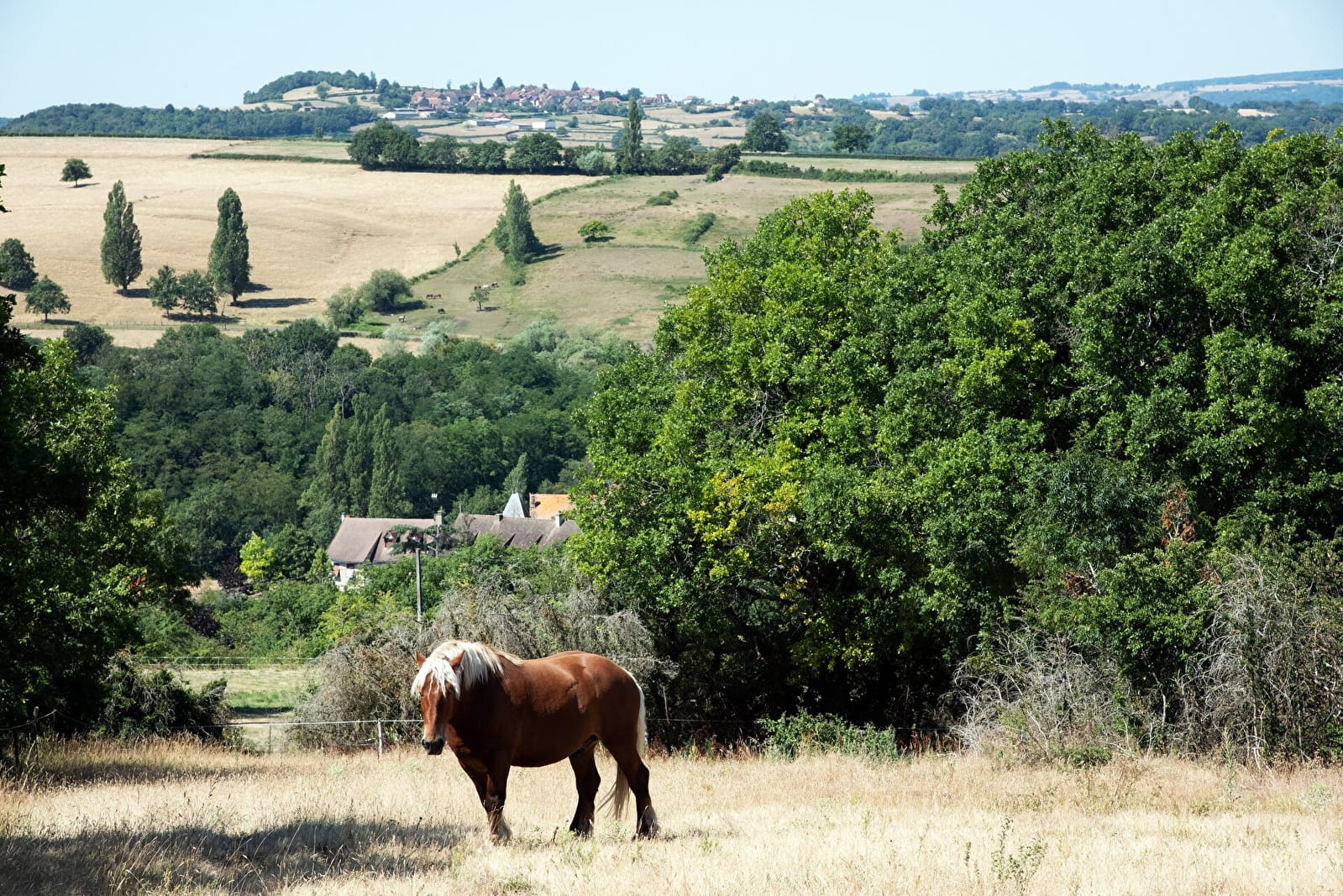 A l'Est : vignes, landes et vue sur la dépression de la Grosne