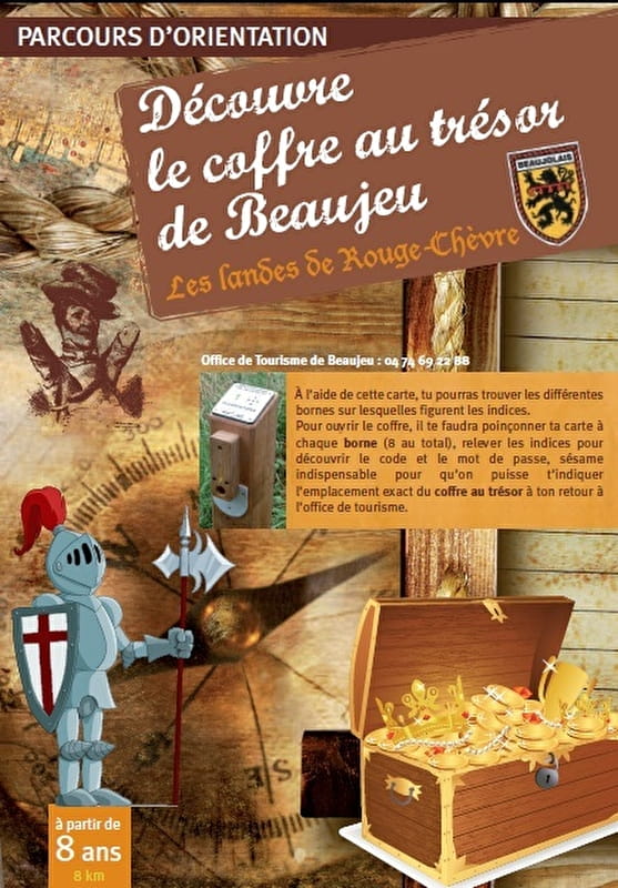 L'Office de Tourisme du Beaujolais a mis en place une randonnée d'orientation de 8 km pour les enfants (à partir de 8 ans). Chaque participant doit venir retirer une carte à l'Office de Tourisme et la poinçonner à chaque balise qu'il aura retrouvée le long du circuit. A la fin du parcours, les enfants viennent ouvrir le coffre au trésor ! Durée : environ 3h.